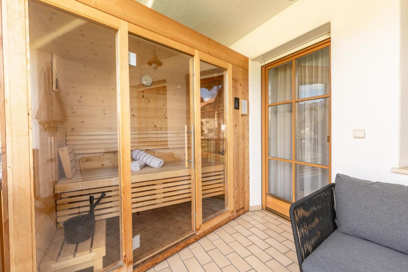 Junior Suite con Sauna. This suite offers a sauna. The spacious suite features 1 bedroom and 1 bathroom with a shower and bathrobes. Featuring a terrace with garden views, this suite also provides a wardrobe and a flat-screen TV. The unit offers 1 bed. ;