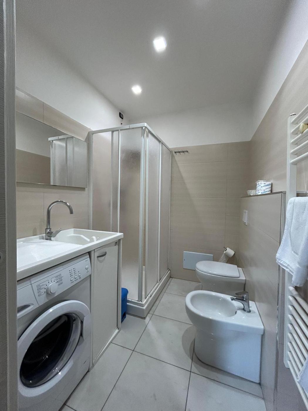 Camera Familiare con Bagno Privato. Offering free toiletries, this family room includes a private bathroom with a shower, a bidet and a hairdryer. In the fully equipped kitchen, guests will find a stovetop, a refrigerator, kitchenware and an oven. The air-conditioned family room offers a flat-screen TV, a washing machine, a coffee machine, a seating area as well as sea views. The unit has 3 beds. ;
