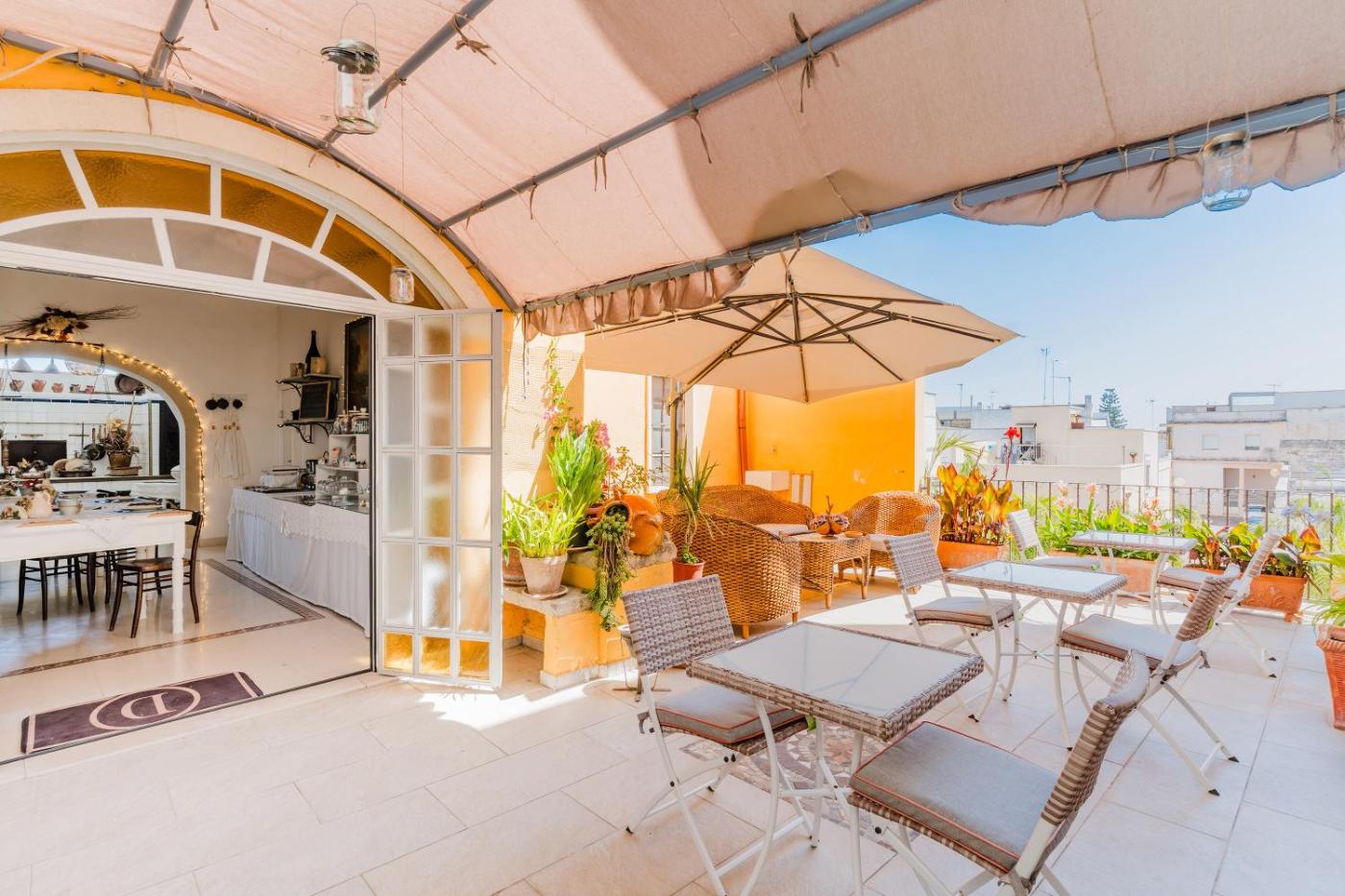 Palazzo De Castro si trova a Squinzano e prevede la vista sulla città , un giardino, una sala comune e una terrazza. Il WiFi gratuito è in dotazione in tutta la struttura.