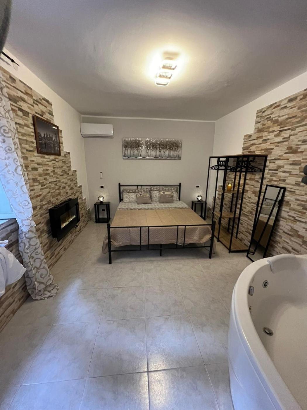 Suite con Vasca Idromassaggio. Guests will have a special experience as this suite offers a hot tub and a fireplace. Boasting a private entrance, this air-conditioned suite includes a kitchen, 1 bedroom and 1 bathroom with a bath and a shower. Guests can make meals in the kitchen that has a stovetop, a refrigerator, kitchenware and an oven. This suite has a tea and coffee maker, flat-screen TV, garden views, as well as chocolate for guests. The unit has 1 bed. ;
